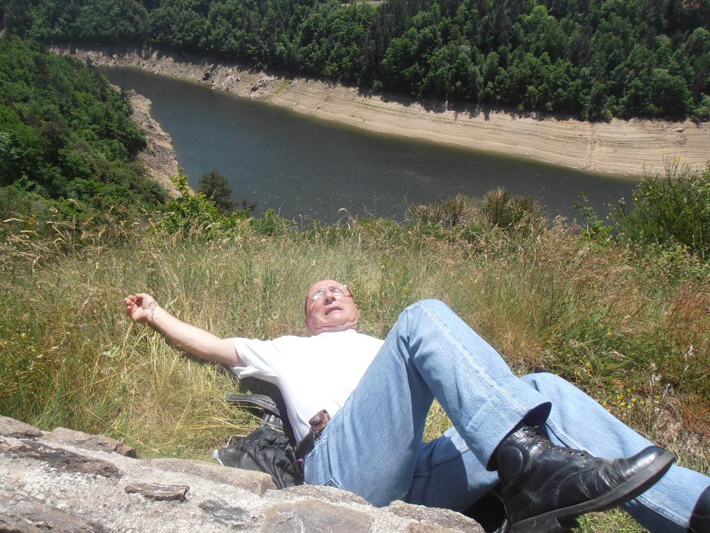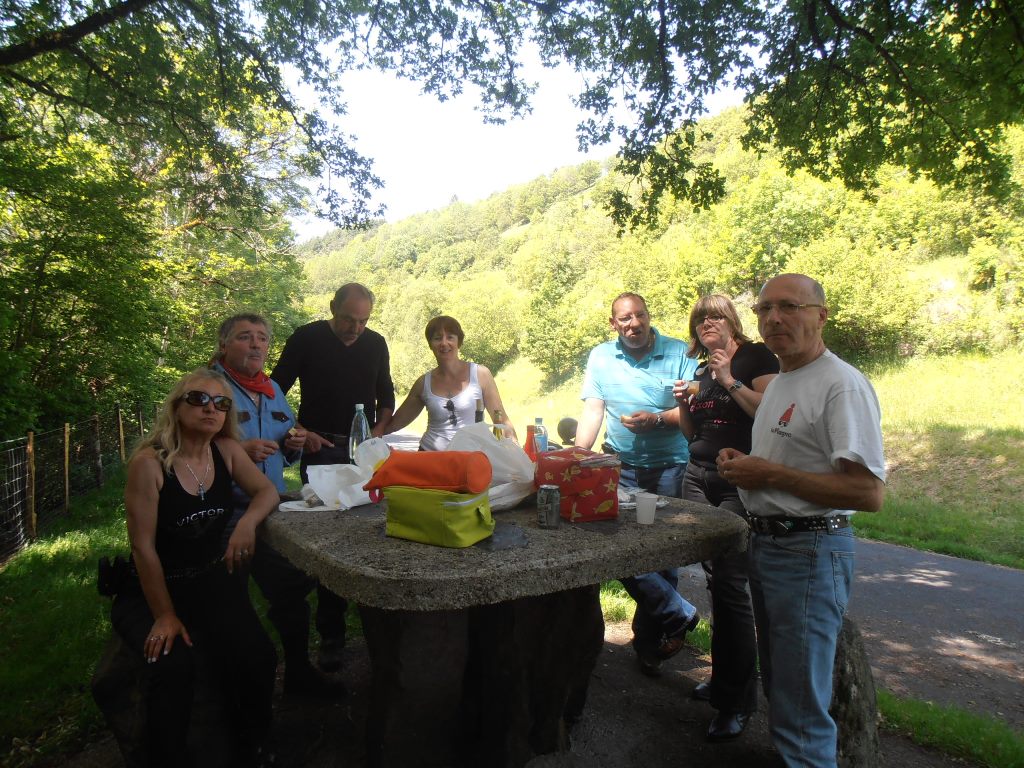 Traversée du col de PUY MARY et descente sur SALERS. Petit hôtel sympa (en zone piétonne mais avec parking privé). Alors là le grand jeu. Chambres simples mais bouffe grandiose. Les adeptes de régime, les chichiteux, les anorexiques et les pisse-vinaigre passez votre chemin. Le soir en demi-pension c'est l'apothéose. Apéritif - entrée - plat - fromages - dessert - café (voire le pousse), le tout de spécialités locales donc hyper caloriques mais bon pour les papilles (mauvais pour la ligne mais on s'en fout..). C'est la raison pour laquelle la sieste était obligatoire entre les repas.Nous avons failli perdre le vieux à Garabit malheureusement il a été sauvé de justesse. (non je déconne..).