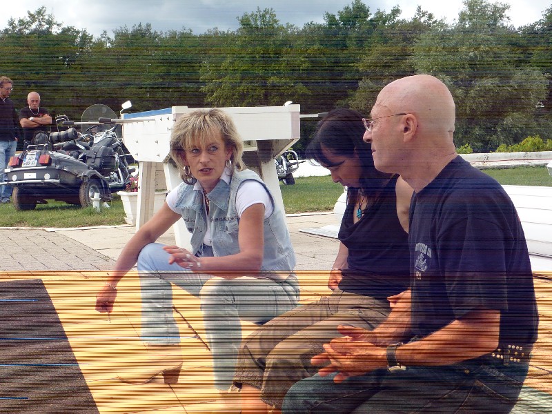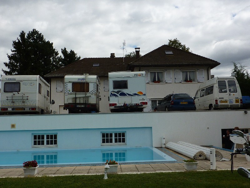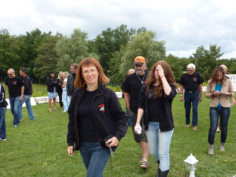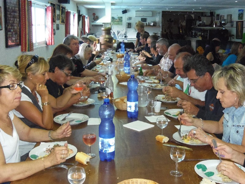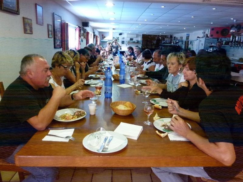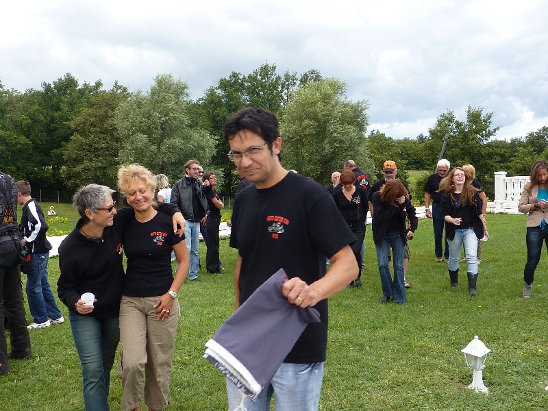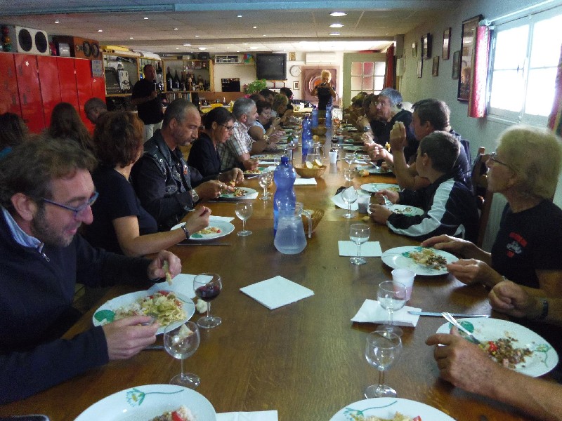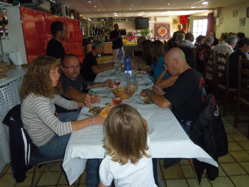 C'est bien connu, les motards, à l'inverse des escargots, n'aiment pas trop la pluie, c'est pourquoi nous n'étions que 6 courageux à braver les frimas de ce petit matin d'hiver (heu.. d'été). Hé ben, vous me croirez ou non, même pas mouillés. Na.. bien fait pour les absents. De toute façon il fallait pas trop traîner si on ne voulait pas rater l'apéro. Bref à 11 heures 30' nous étions à destination et nous avons du faire la circulation devant l'aflux des nombreux camping-car (hé oui ce week end ce n'était pas le MCCL mais le CCCL (club camping-car de Lyon).