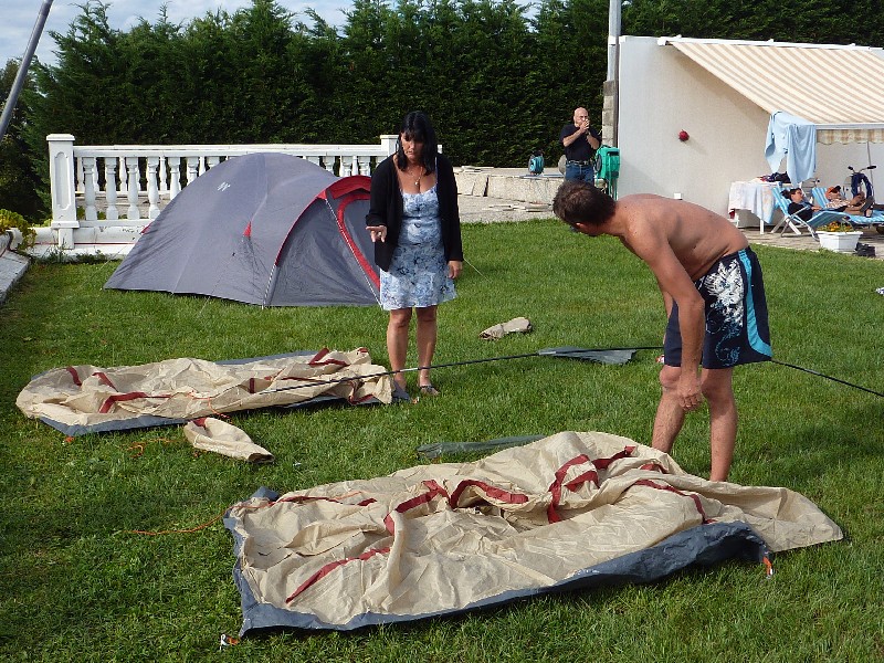 Le soir re-apéro et on a fini les restes suivi d'une petite soirée dansante. Les plus loins et les moins bourrés sont rentrés chez eux les autres ont dormi sur place. Je veux pas être mauvaise langue mais un couple (dont je tairai le nom, indice il est de la Loire..) a débuté la nuit sous la tante, heu tente et a terminé sur un canapé. Il faut dire que le fond de l'air était frais et l'arossée, pardon la rosée importante.