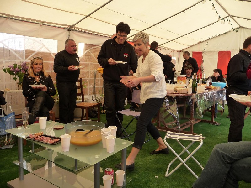 Ce 09 avril 2012, la presque totalité du club lui a rendu une visite surprise à l'occasion de son anniversaire. Chacun y est allé de sa quote part et ce fut un repas joyeux sous le beau chapiteau dressé pour la circonstance. Les traditionnelles bougies ornaient non pas un gateau mais des petits fromages. Remarquez cela a du couter cher en bougies........