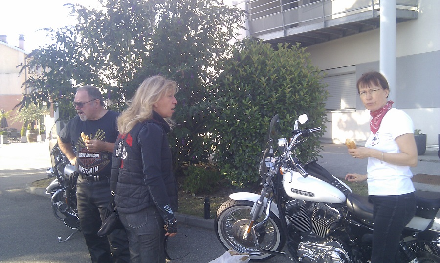 Il y avait beaucoup d'appelés pour cette balade mais peu d'élus au départ. Christine (honneur aux dames), Christian, Marco, Josie et ma pomme, soit 4 motos. Nous nous sommes retrouvés à 09 heures à SAINT ROMAIN EN GAL. Petit café et croissants sur le parking du bar (fermé le cuistre).