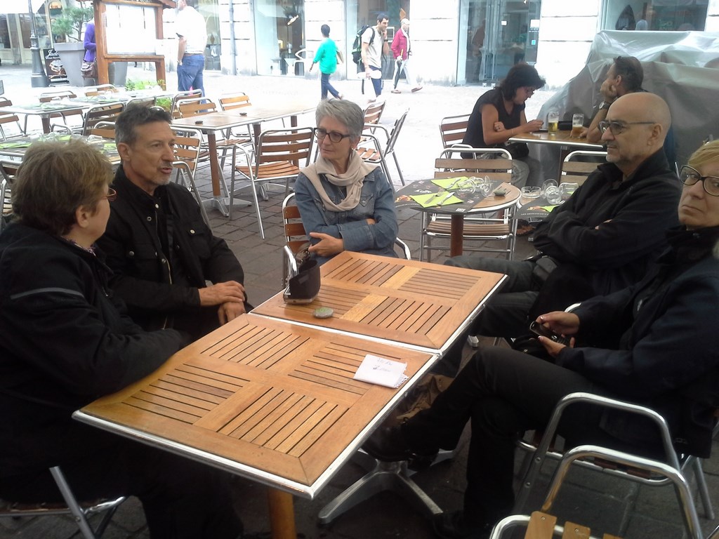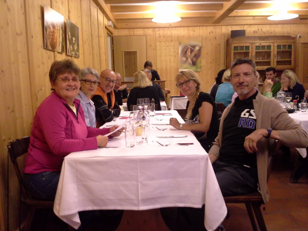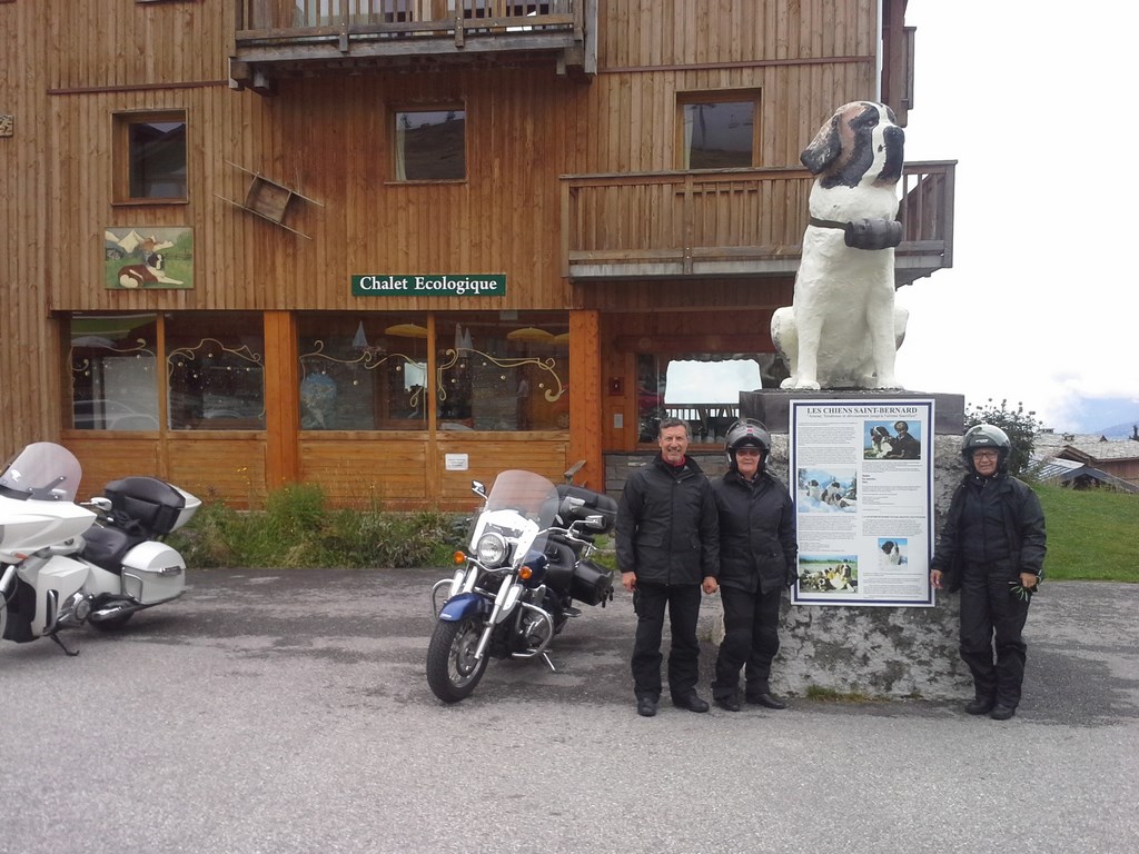 Vers 11 heures, descente sur AOSTE, en bas la route est sèche et le soleil se lève. Les motards récupèrent leurs passagères. Ascension du col du Petit Saint Bernard (très technique). Arrêt repas à la ROSIERE, petite pizzéria sympa. Nous prenons quelques forces et direction la maison par le chemin le plus court et le plus rapide.