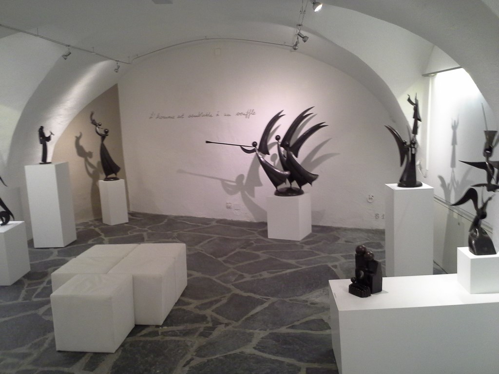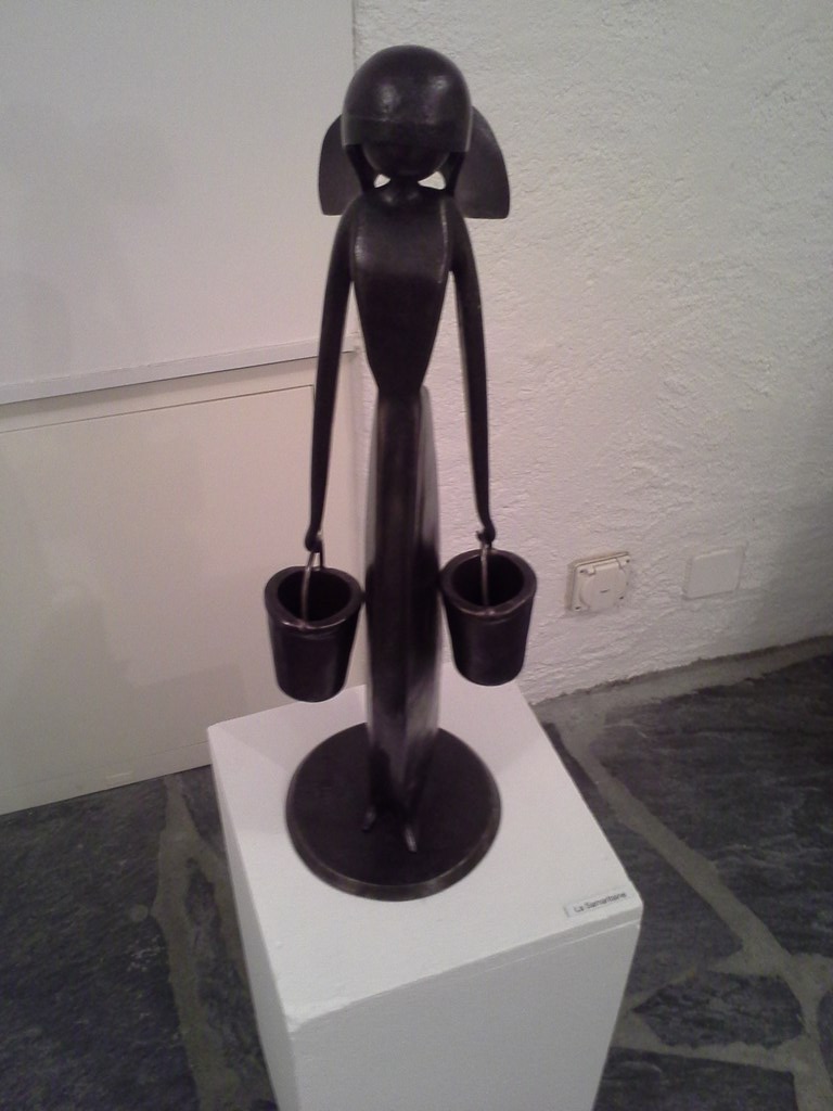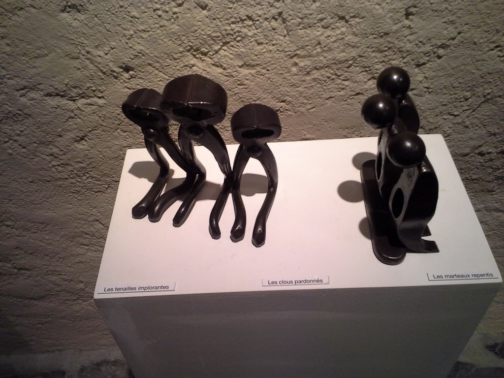 Le dimanche, pour ne pas partir trop tôt afin de laisser la neige fondre, nous avons visité le musée du col où se tient un élevage de chiens de race...... SAINT BERNARD, quelques reliques intéressante et une exposition de sculptures de Jean-Pierre AUGIER. Ouvre originale composée d'outils recyclés.