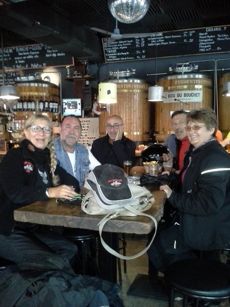 Nos montures (je parle des motos) ont passé également la nuit bien au chaud (et au sec) entourées par de nombreuses caisses de 35 bières différentes.