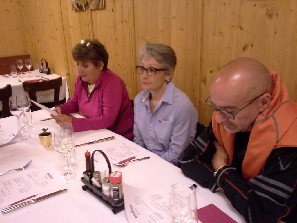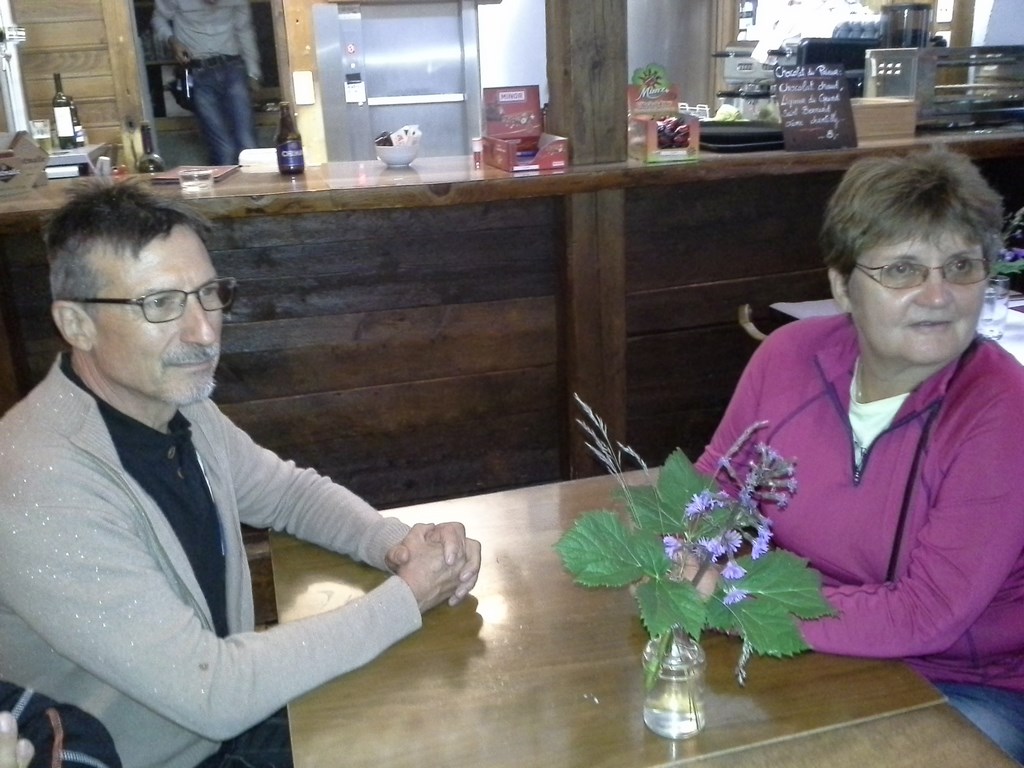Pique nique quand mème avant CHAMONIX. Il pleuvine, mais qu'importe. Arrêt café à CHAMONIX. Bel établissement. Pour un peu on y serait resté mais nous avions rendez-vous avec notre col et notre auberge.