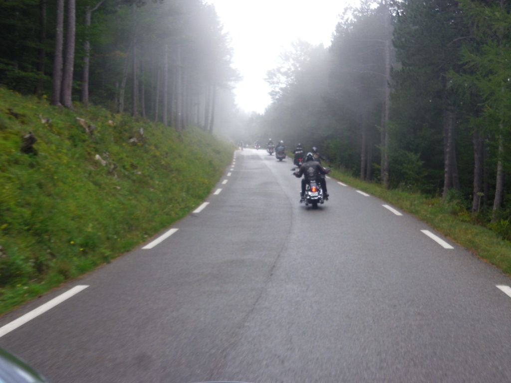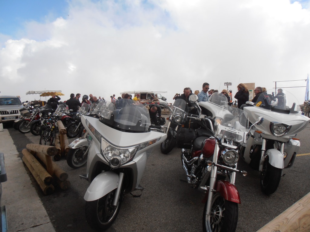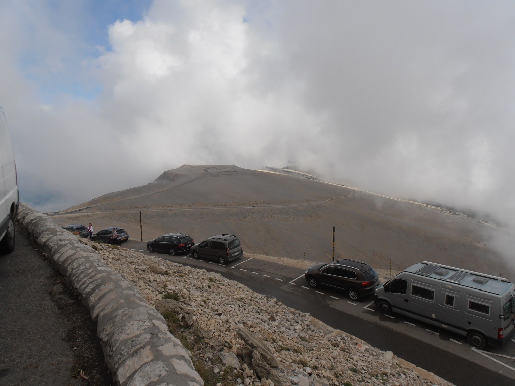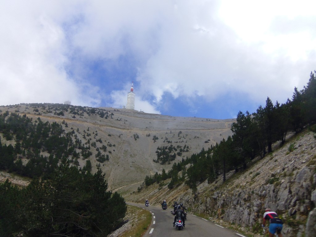 Après le repas ascension du mont ventoux (ouf pas en vélo..). Le géant de Provence, fidèle à sa réputation, était assez encombré. Nous avons survécu à cette ascension et à la descente, après une pause café dans un bar en bordure de route où, Jipé, le cuistre, a couché sa moto en voulant tourner tout seul. Tant pis l'avait qu'à faire de la muscu ou prendre une moto moins lourde. Non mais... Enfin pas de bobo.