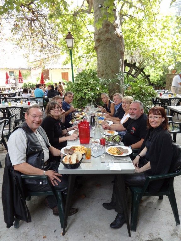 Le lendemain depart de pas très bonne heure mais de bonne humeur direction FONTAINES DE VAUCLUSE. Visite du village, du moulin à papier et du gouffre où la Sorgue prend sa source. Quartier libre, chacun a visité à son rythme et mangé selon son envie.