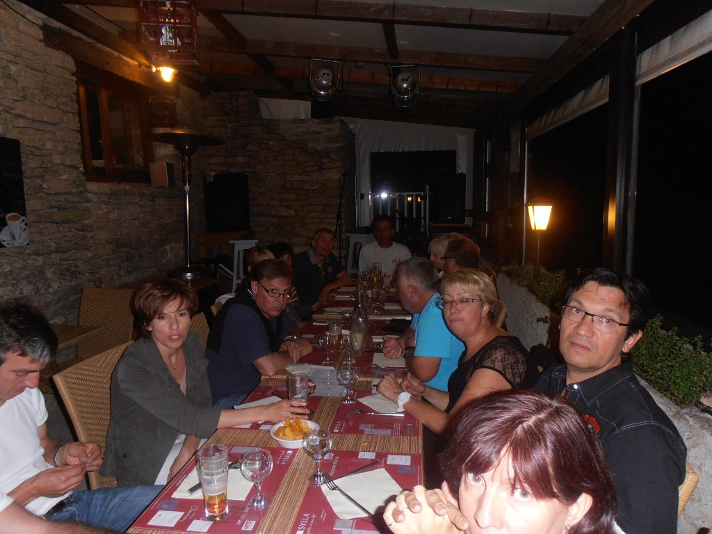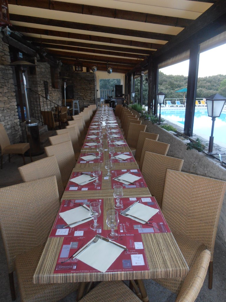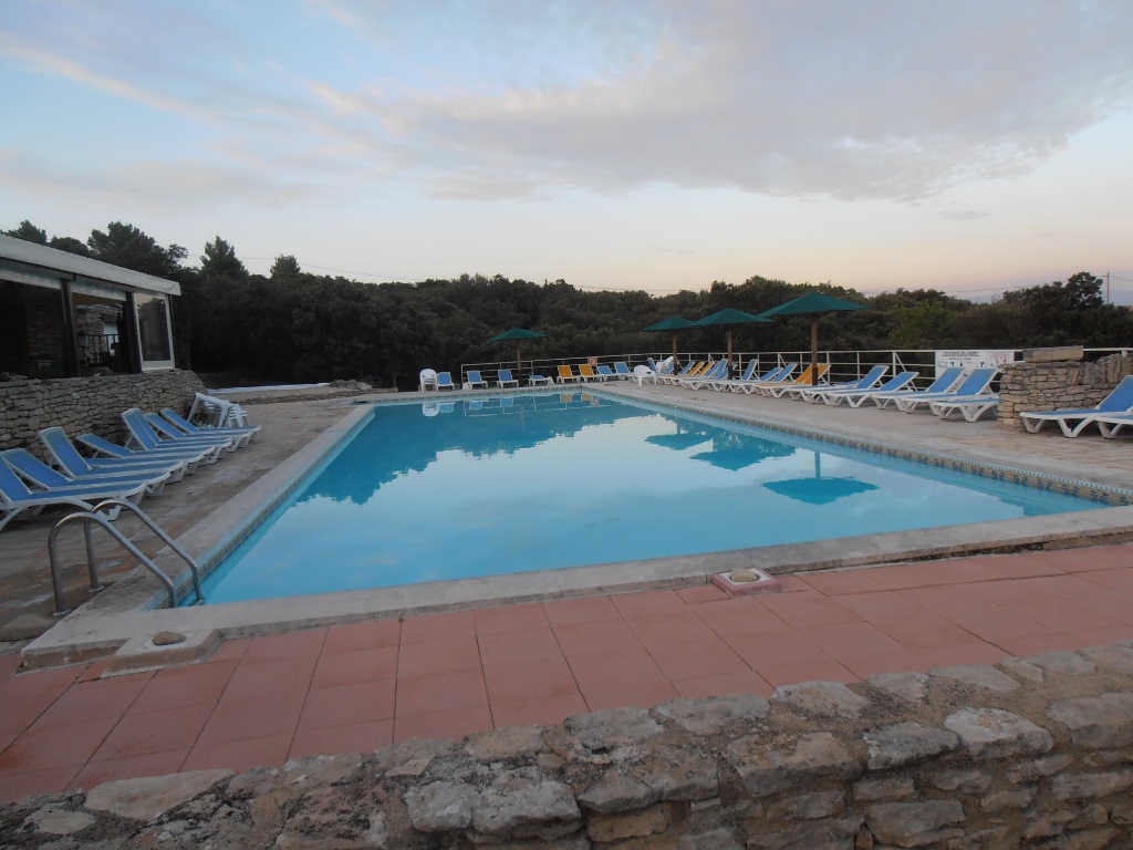 Hébergement à GORDES au camping des sources. Vue imprenable sur la vallée. Belle piscine (un peu fraîche malgré l'affichage piscine chauffée). Mobil home impeccables et très récents. Bonne bouffe. Bref une bonne soirée. Nous avons même eu droit à un concert guitare du patron et à une sérénade de la copine de Rémy. Que du bonheur.