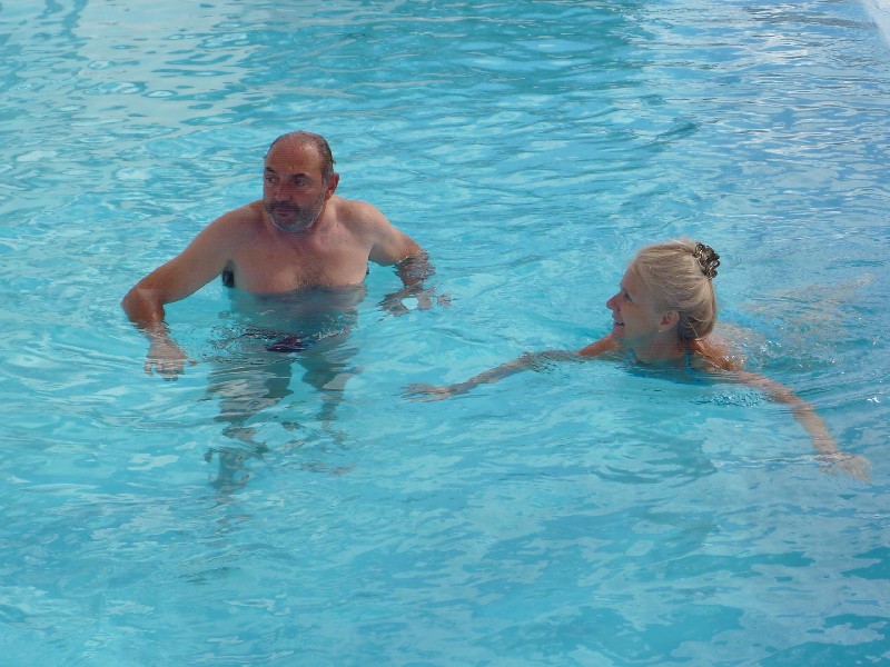 L'après midi s'est déroulé au gré de chacun, sieste, jeux, piscine, jaccuzzi (plus de monde car plus chaud). pêche, et pétanque miniature. On a quand même pu remarquer de belles naïades, mais, sourds à l'appel des sirènes, on s'est consacré sur l'essentiel : Le repos.