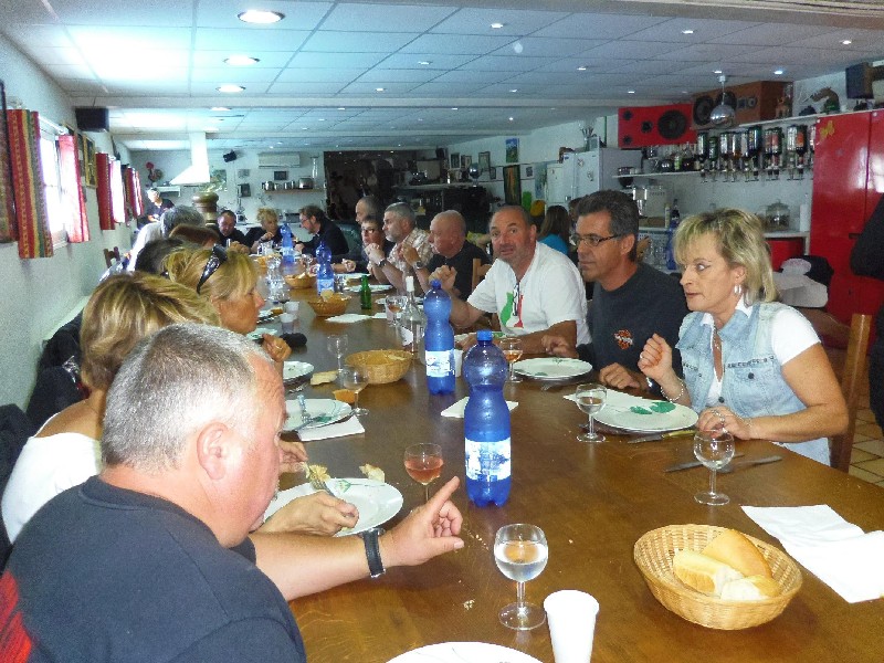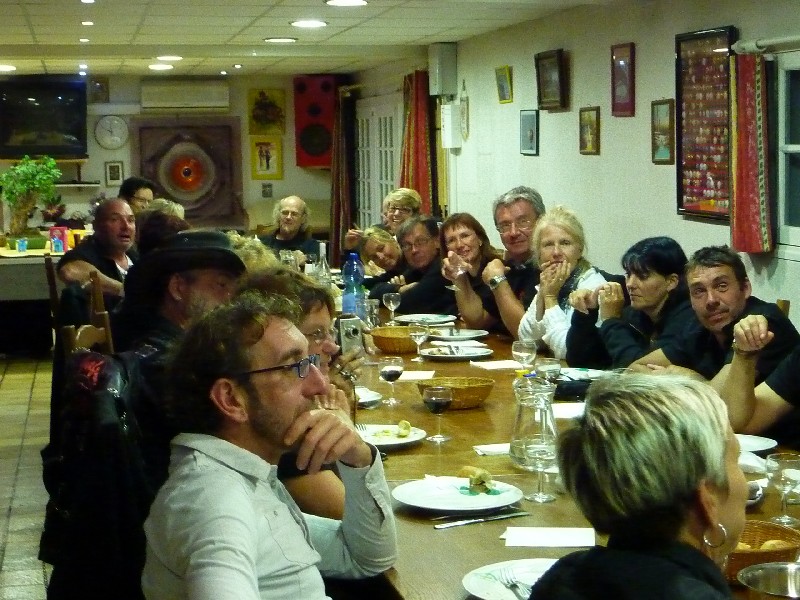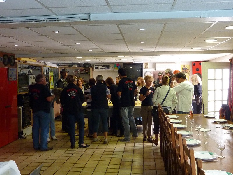 C'est bien connu, les motards, à l'inverse des escargots, n'aiment pas trop la pluie, c'est pourquoi nous n'étions que 6 courageux à braver les frimas de ce petit matin d'hiver (heu.. d'été). Hé ben, vous me croirez ou non, même pas mouillés. Na.. bien fait pour les absents. De toute façon il fallait pas trop traîner si on ne voulait pas rater l'apéro. Bref à 11 heures 30' nous étions à destination et nous avons du faire la circulation devant l'aflux des nombreux camping-car (hé oui ce week end ce n'était pas le MCCL mais le CCCL (club camping-car de Lyon).