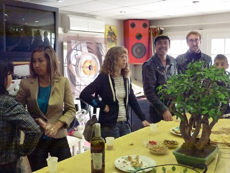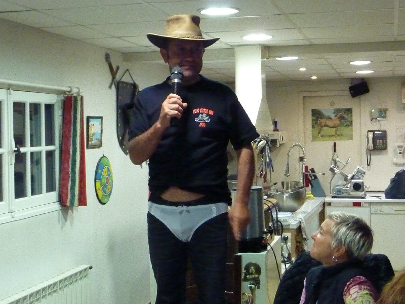 Nous avons commencé par l'apéro (punch fourni par notre Gnaf national ou international je sais plus trop). Après, nous avons dégusté un super cochon cuit et fourni par le cuistot en chef : Robinood , bestiole agrémentéé des salades, ratatouilles, fromages et dessert, confectionnés avec amour (ou avec les doigts suivant le plat) par nos compagnes respectives. Mine de rien nous étions 39 à table. Qui dit mieux.