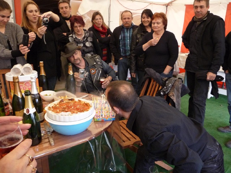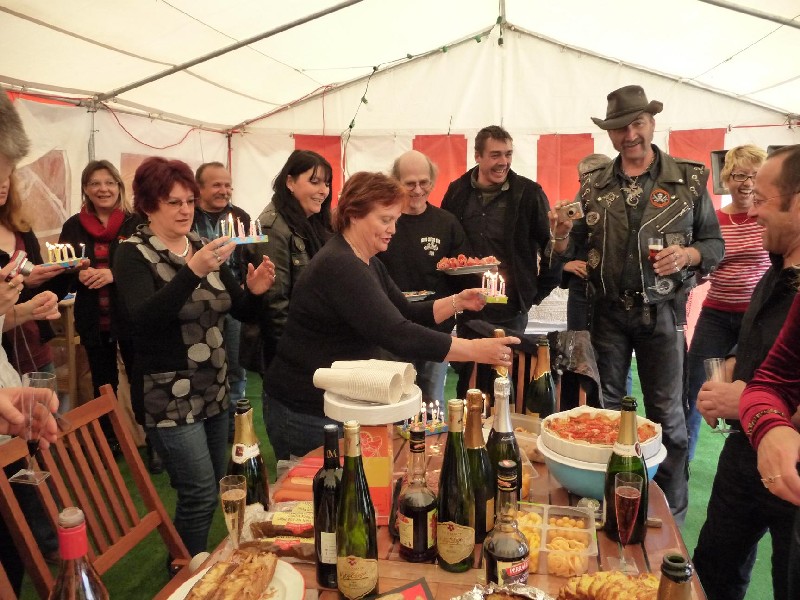 Ce 09 avril 2012, la presque totalité du club lui a rendu une visite surprise à l'occasion de son anniversaire. Chacun y est allé de sa quote part et ce fut un repas joyeux sous le beau chapiteau dressé pour la circonstance. Les traditionnelles bougies ornaient non pas un gateau mais des petits fromages. Remarquez cela a du couter cher en bougies........