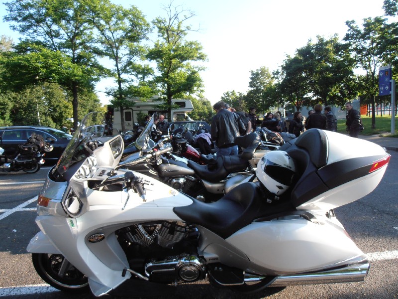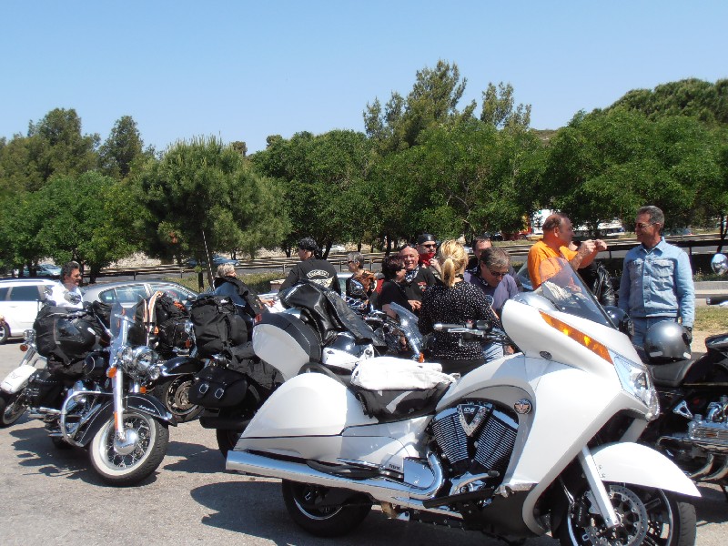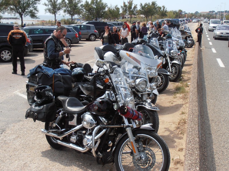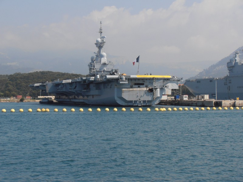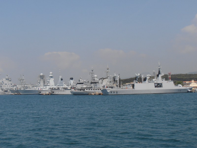 Toute la flotte est là : des batralls, des croiseurs, des frégates, des escorteurs, des avisos, des vedettes, des porte-avions des porte crayons qui ne payent pas de mine, des navires anti-mines aussi. Et notre fleuron de la marine le CHARLES DE GAULLE (non monsieur il n'était pas en panne mais en révision, nuance..). Jolie visite, instructive et plaisante. Rien à voir avec nos motos. On ne sait pas combien de tonneaux jaugeaient tous ces bâtiments mais notre groupe avait au moins un tonneau, ouais c'est léger.