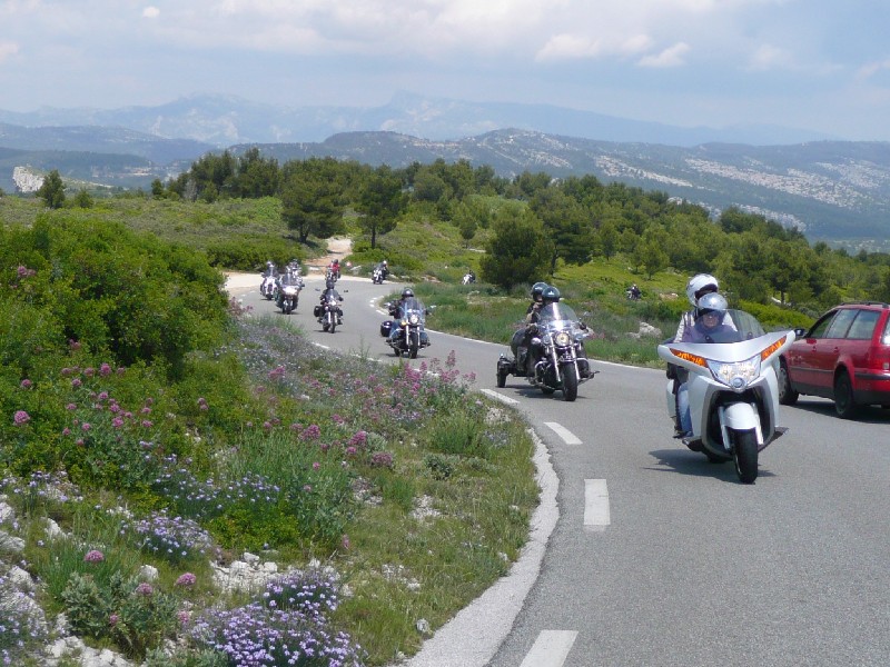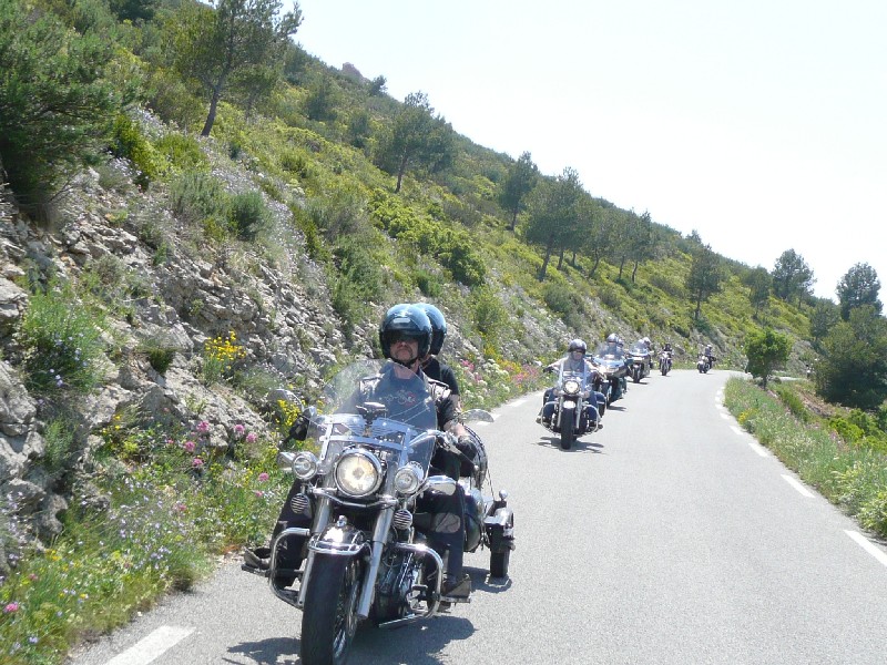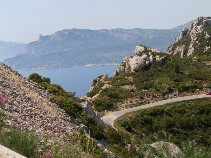 Après un frugal repas tiré du sac, un petit café et pour certains une grosse glace, nous avons silloné la route des crêtes qui domine les calanques. Vue superbe mais faut quand même se concentrer sur la route.