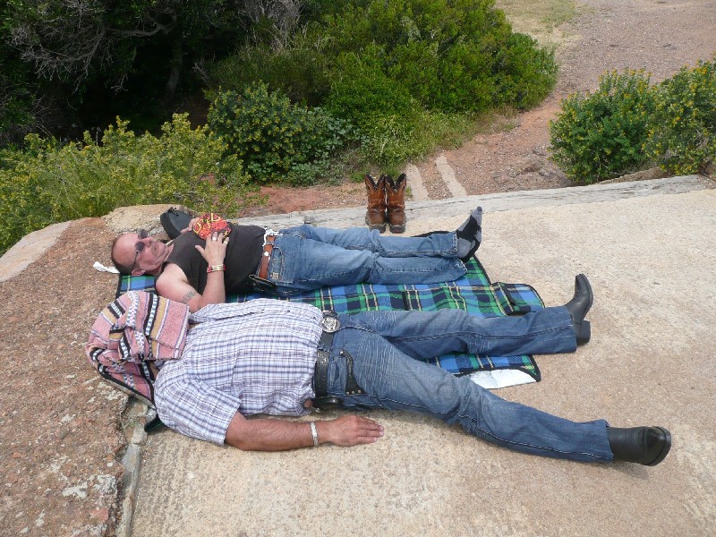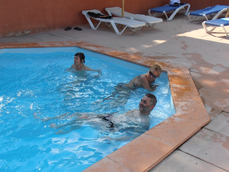 Installation dans un beau camping sentant le pin, la lavande et la farigoulette (si je vous assure). Le camping L'HERMITAGE à LE PRADET(coup de pub au passage). Camping dont le terrain et la maison appartenaient à RAIMU et dont les noms des emplacements fleurent bon le pastis, le soleil et la provence. Un chalet pour 4. On vide le sac et hop direction la piscine ou la plage, au choix. Vint l'heure de l'apéro et du repas. Grande tablée. Repas local ou presque (le mexique c'est pas si loin et Rio est aussi au bord de la mer).