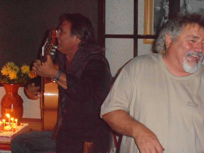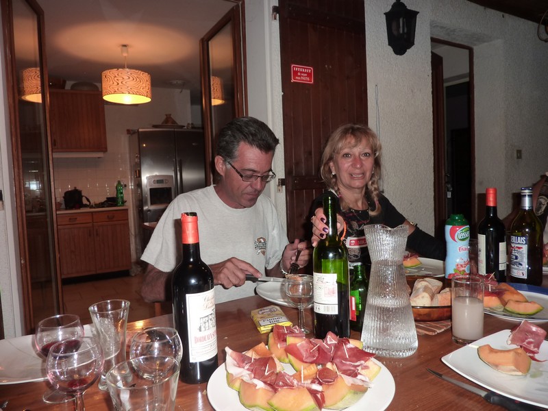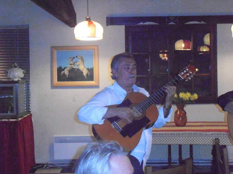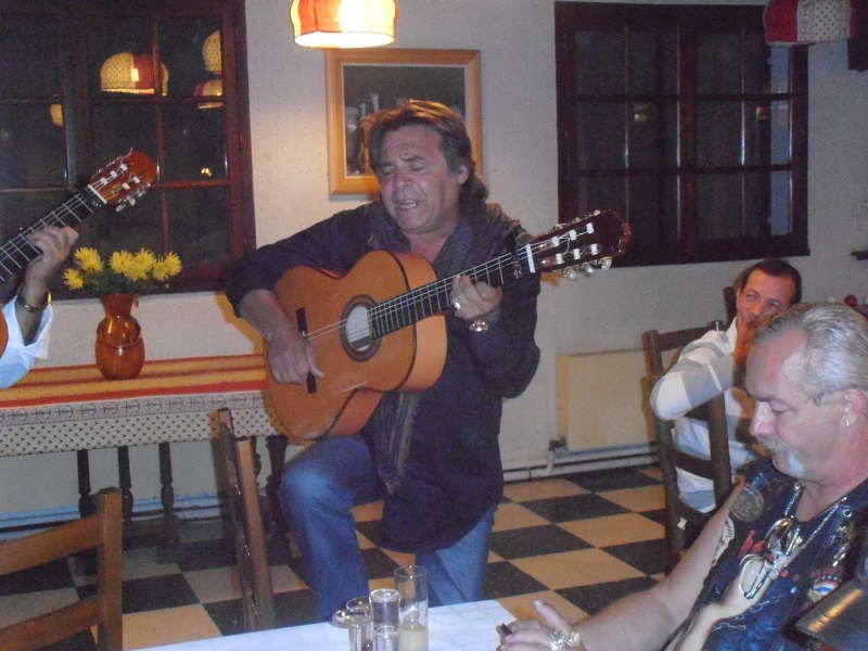 Puis repas avec les GIPSY KINGS. Rien que des têtes d'affiches. Le repas fut bon : Tielles - testicules de taureau (heureusement le toréro n'a pas perdu..), fromages et gateau d'anniversaire arrosé de champagne cuvée spéciale (voir photos).