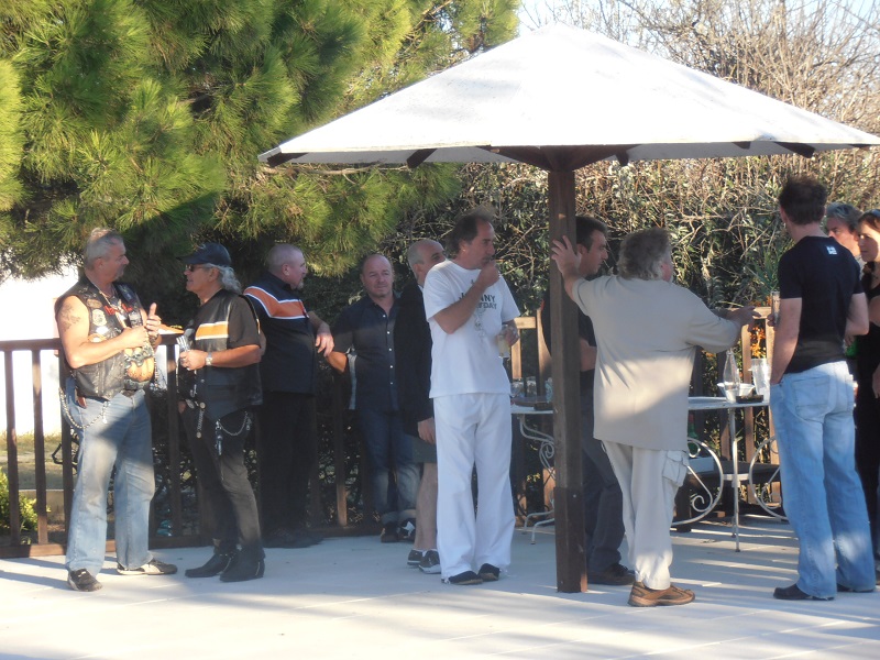 Là s'est enchainé une soirée de Louf. Un concert apéritif avec, je vous le donne Emile : JOHNNY - Les ZIZIS TOP - manquaient plus que les SEX PISTOLS. Heureusement d'ailleurs car les groupies étaient là et prêtes à tout. Tout cela sous le soleil et au bord d'une piscine. Dommage personne n'est tombé dedans. Les traditions se perdent.