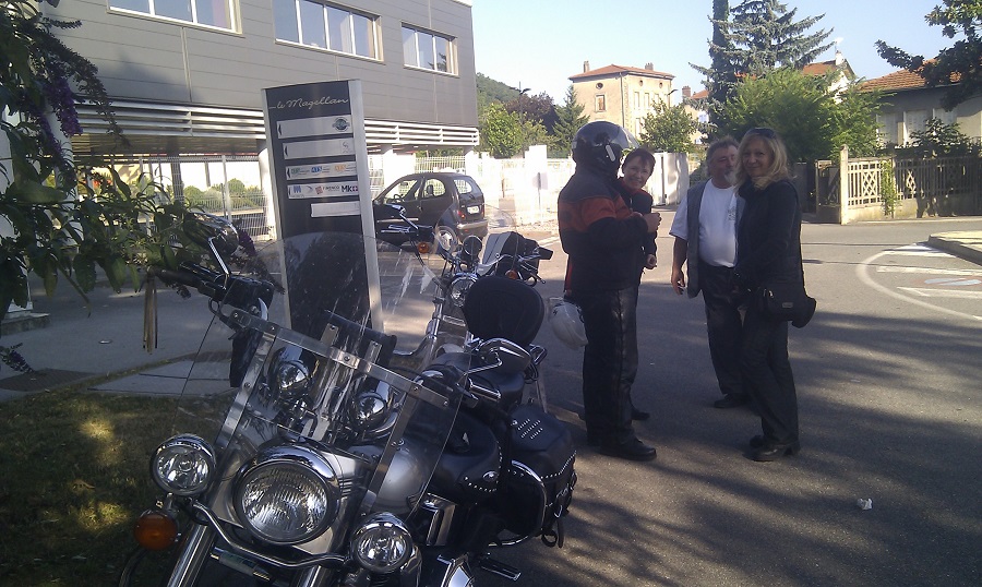 Il y avait beaucoup d'appelés pour cette balade mais peu d'élus au départ. Christine (honneur aux dames), Christian, Marco, Josie et ma pomme, soit 4 motos. Nous nous sommes retrouvés à 09 heures à SAINT ROMAIN EN GAL. Petit café et croissants sur le parking du bar (fermé le cuistre).