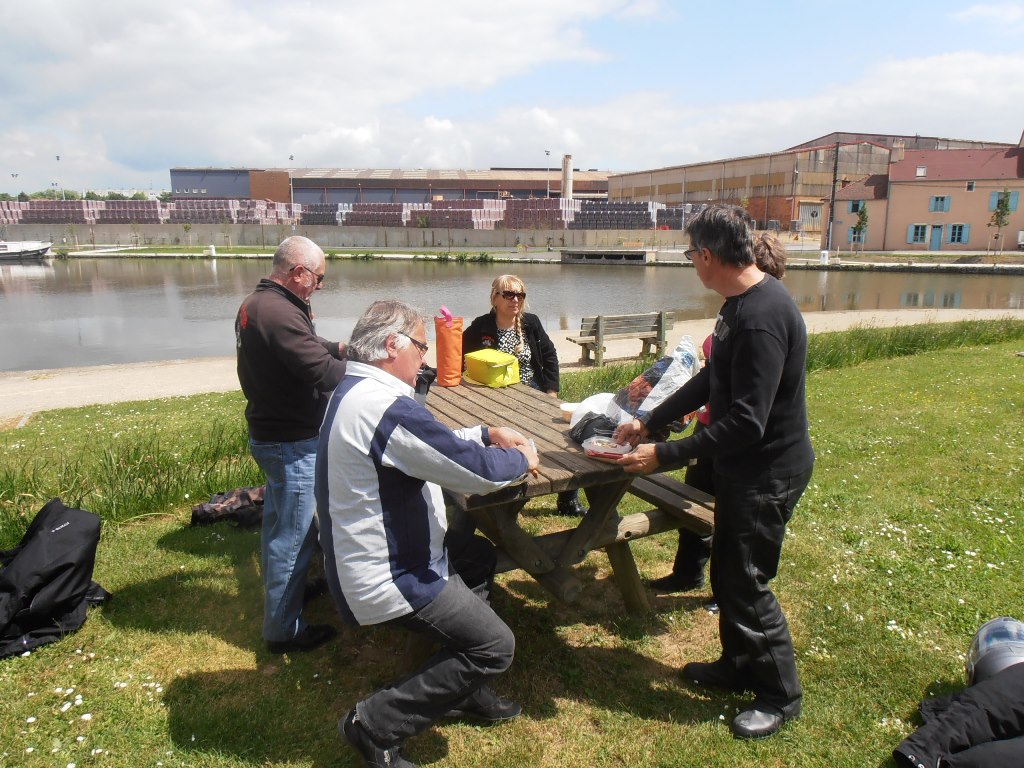 Pique nique en bordure du canal de Bourgogne près des péniches.