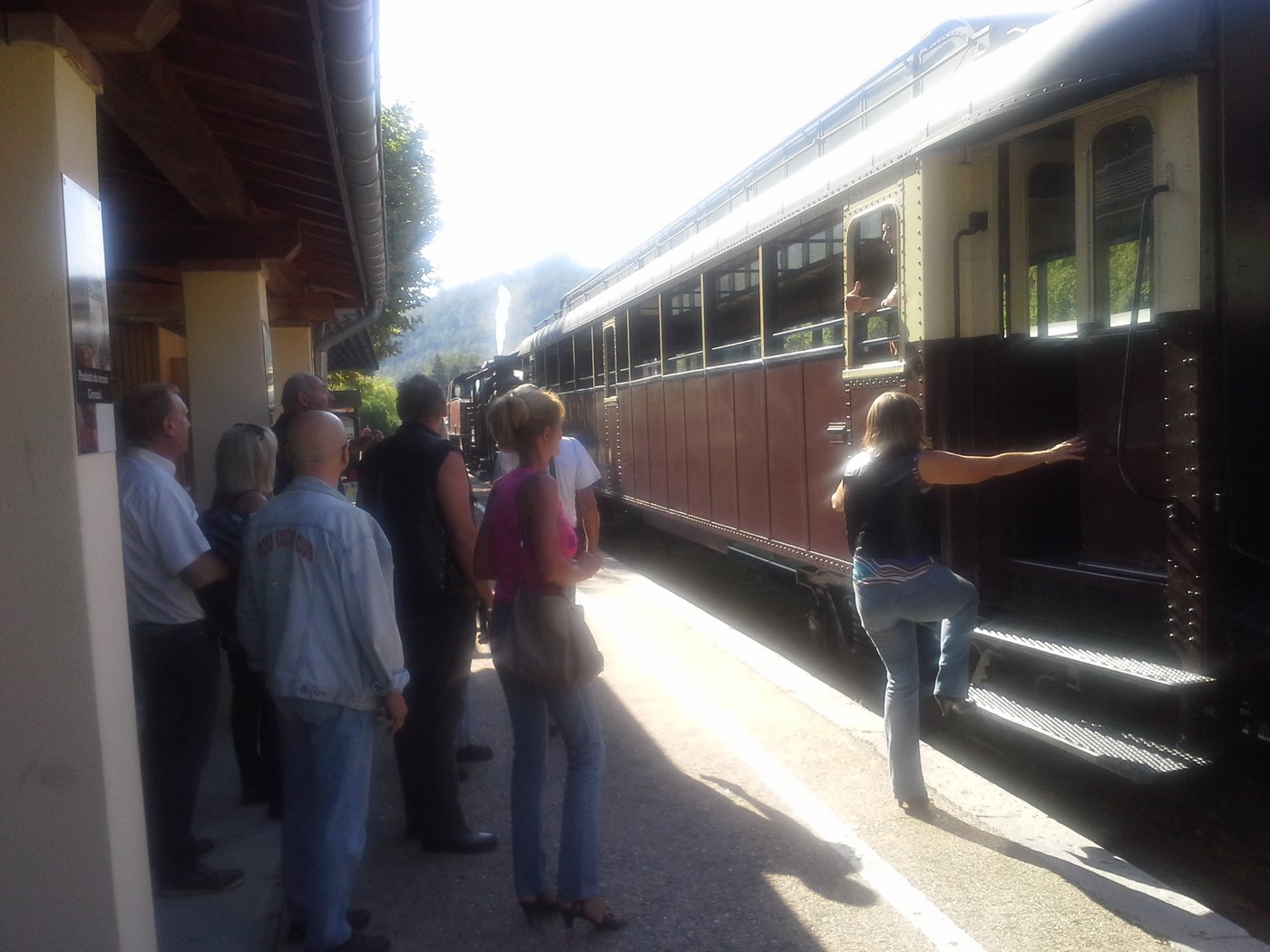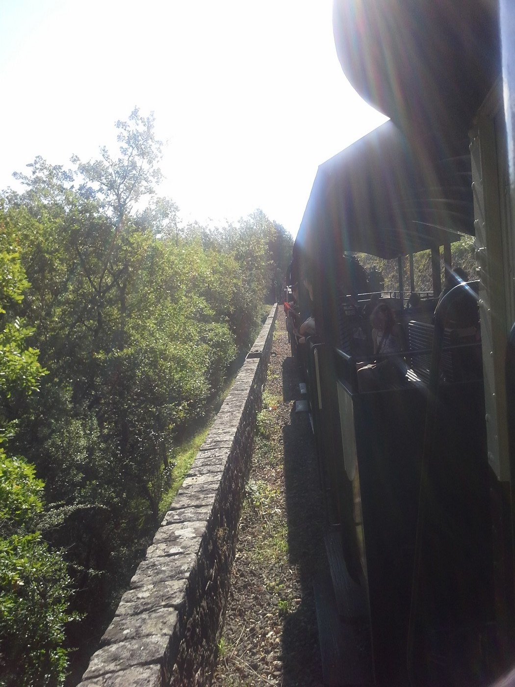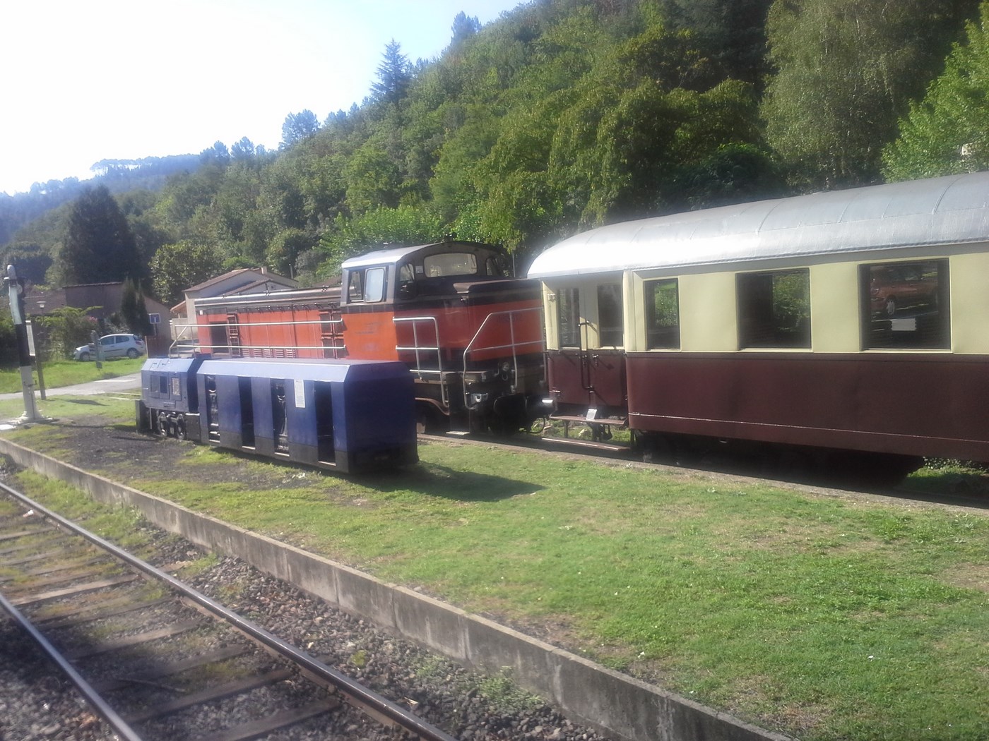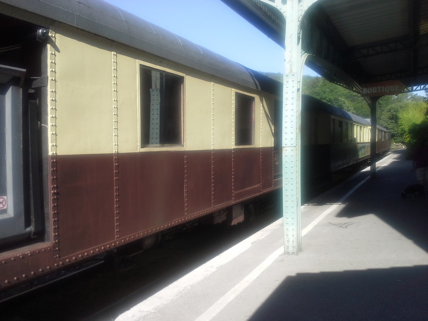 La balade du samedi matin a commencé par un voyage en train (Alain était aux anges et pour une fois le train était à l'heure). Nous sommes partis de SAINT JEAN DU GARD pour rejoindre ANDUZE avec un petit train à vapeur moins rapide qu'un vélo, avec plein de fumée et d'escarbilles. Bret on se serait cru dans un roman de Zola, la "Bête Humaine". Manquait plus que Gabin montant dans la cabine.