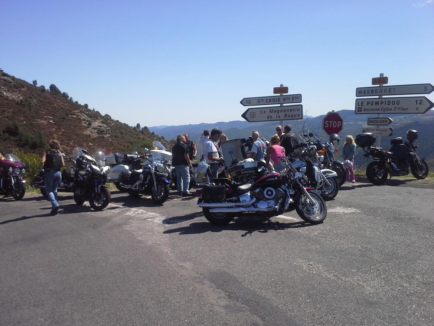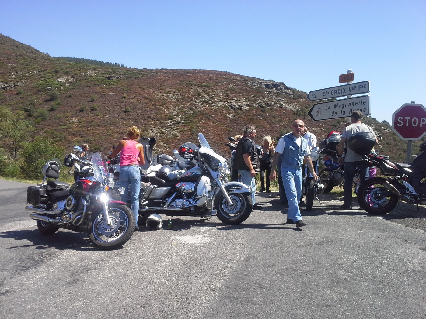 Après le repas direction la corniche des Cévennes et des routes superbes (petites dès fois) mais on a pu se régaler des enfilades de virages. Dommage nous avons été contraints de rouler moins vite que les roasters ou sporstives. Tant pis on les a attendus.