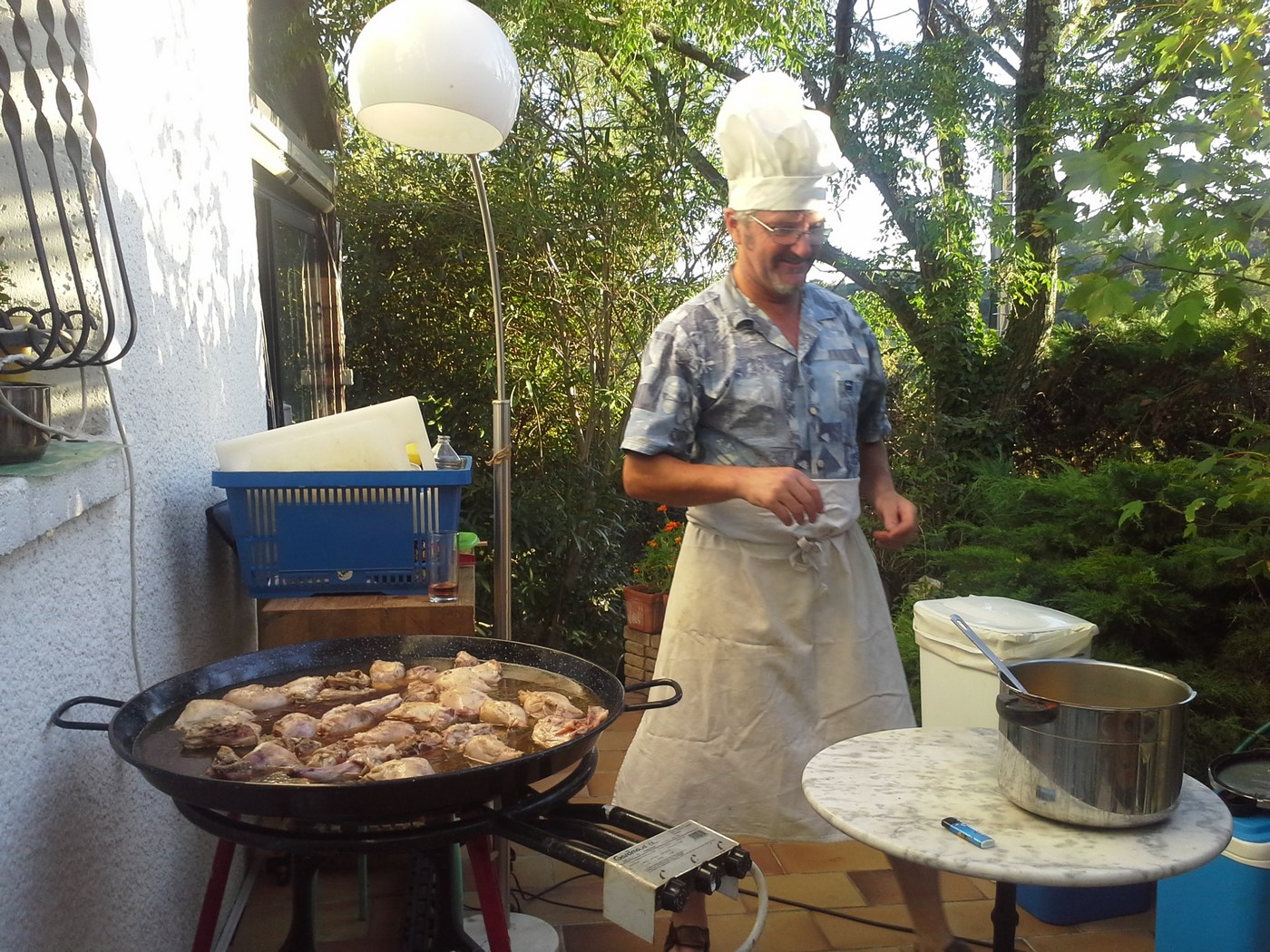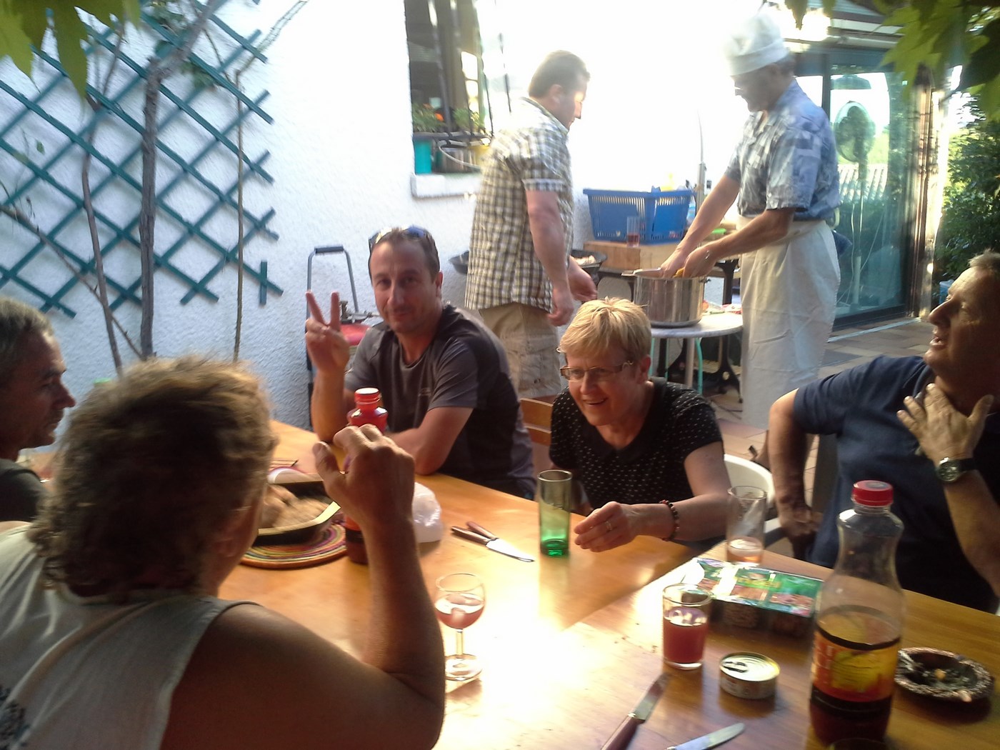 Samedi soir superbe soirée avec Paella ou similaire (j'ai oublié le nom y a des pates à la place du riz ce doit ête une Patella...), le tout servi avec sangria, rosé et tout le tsoin tsoin. Résultat 3 grammes au coucher (hé pour nous sans les motos).